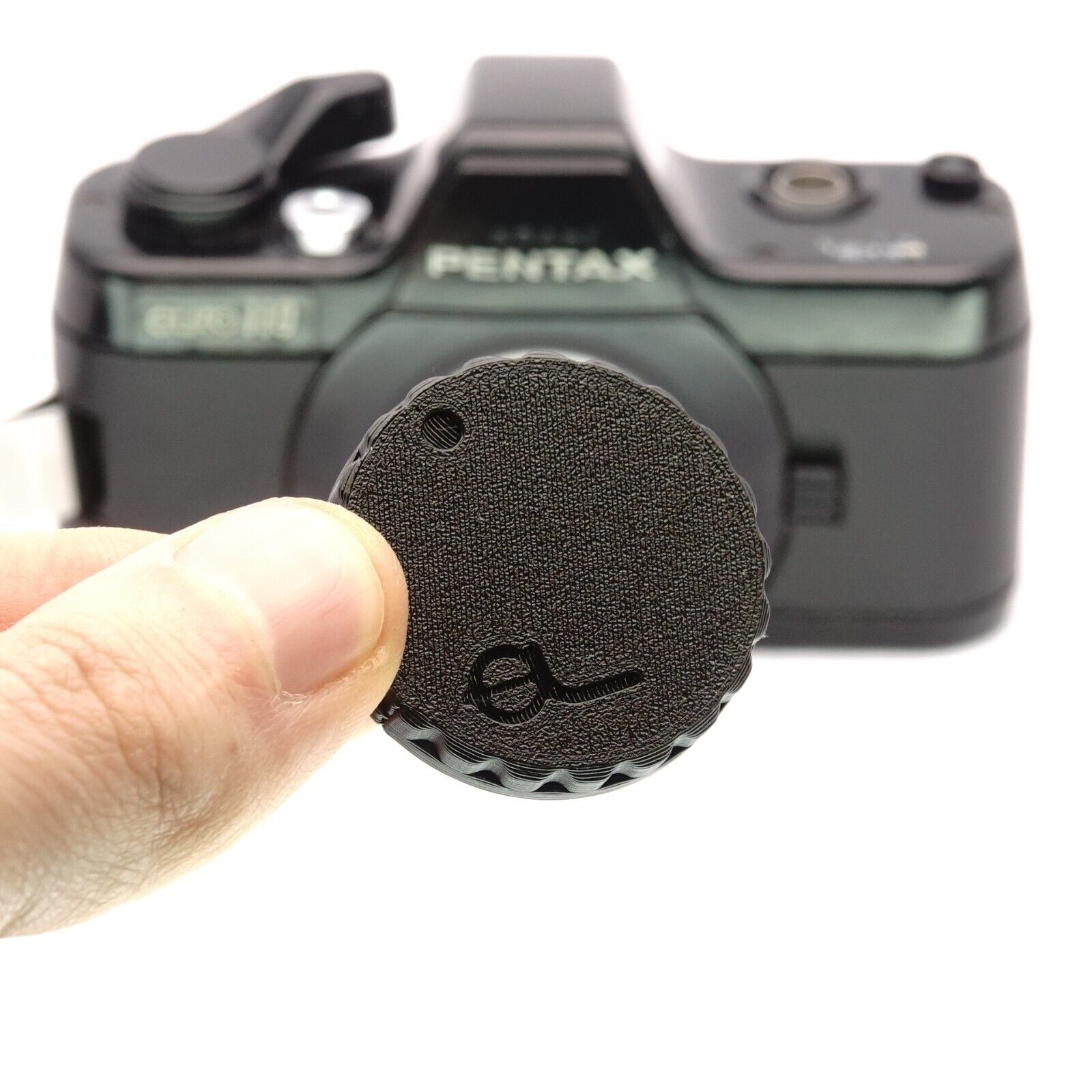 Die Pentax Auto 110 ist als kleinste Spiegelreflexkamera der Welt ein technischer Klassiker. Wenn gerade kein Objektiv montiert ist, sollte das Gehäuse nicht offen bleiben, um den Spiegel und die Mechanik zu schonen. Dieser Gehäusedeckel ist aus technischem Kunststoff gefertigt und schließt das Bajonett zuverlässig ab.
