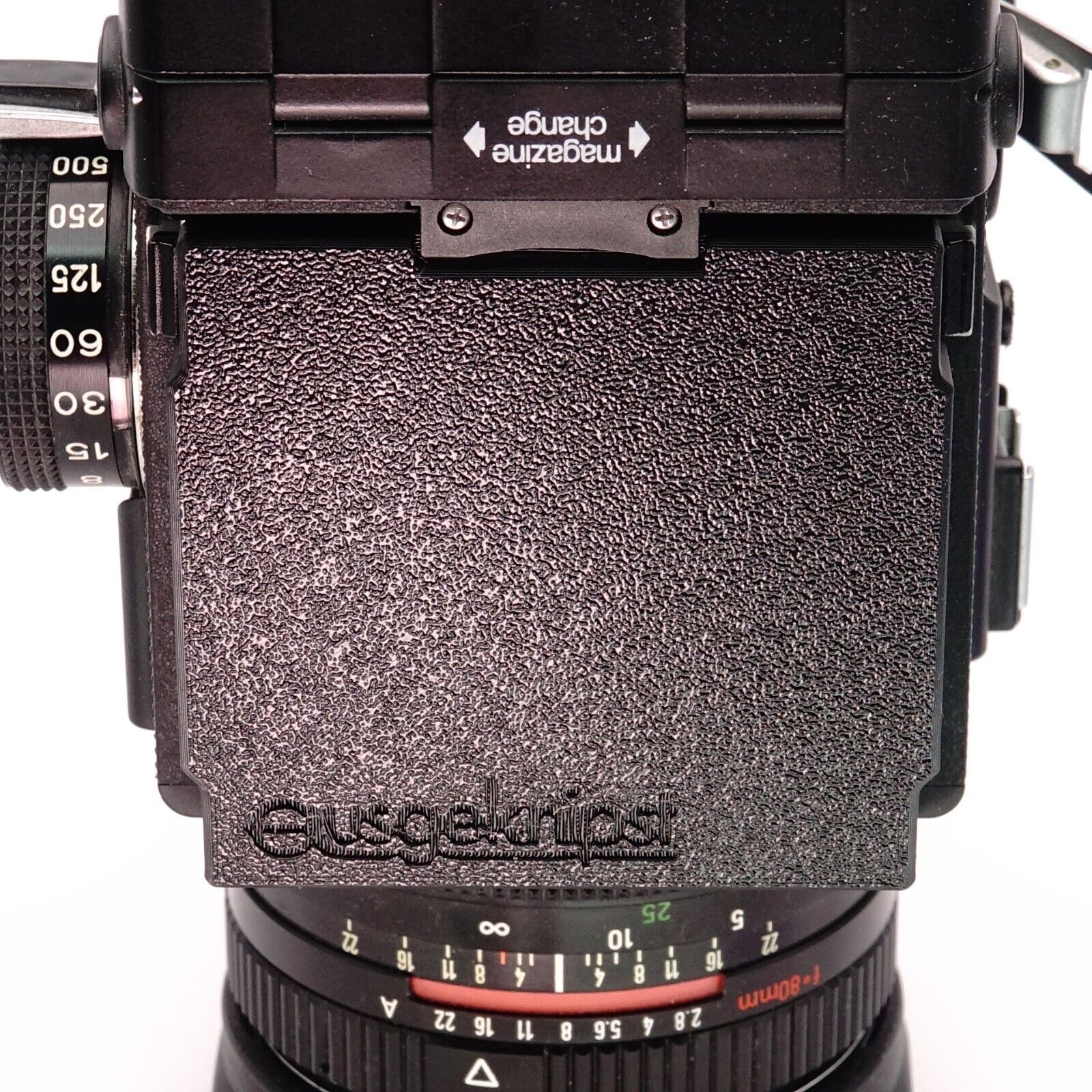 Si tu utilises ta Rolleiflex de la série 6000 de manière modulaire et que tu transportes séparément le boîtier et le viseur, tu connais le problème : l’écran de mise au point reste exposé. Ce cache se place à la place du viseur et protège la surface sensible contre les impacts mécaniques et la saleté. Fabriqué en PLA+ robuste, il s’enclenche solidement et garde l’optique propre.