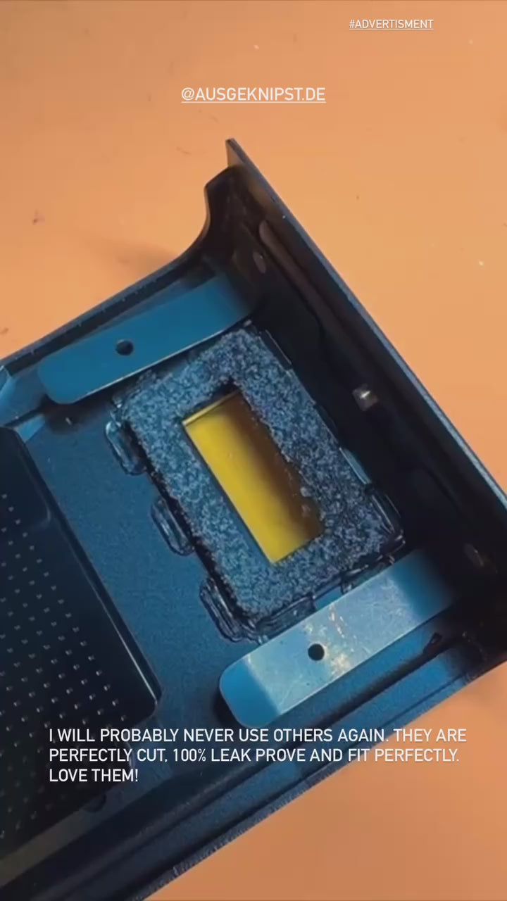 La petite fenêtre de visualisation sur la porte arrière de l'appareil photo est pratique pour voir quel film est chargé. Cependant, le joint d'origine en mousse se dégrade souvent au fil des décennies. Le résultat est une entrée de lumière (bandes rouges sur les photos) ou des miettes collantes dans le boîtier de l'appareil. Nous proposons ici des joints en mousse EVA résistante. Ils sont auto-adhésifs et s'adaptent parfaitement à la série Leica R ainsi qu'à de nombreux appareils compacts haut de gamme. Comme les dimensions sont souvent similaires, le joint peut aussi être facilement ajusté à d'autres modèles avec des ciseaux. Tu reçois directement deux pièces – une de réserve ou pour un second appareil.
